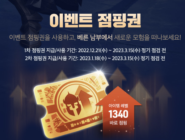 1차 점핑권 지급/ 사용 기간: 2022. 12. 21(수) ~ 2023. 3. 15(수) 정기 점검 전