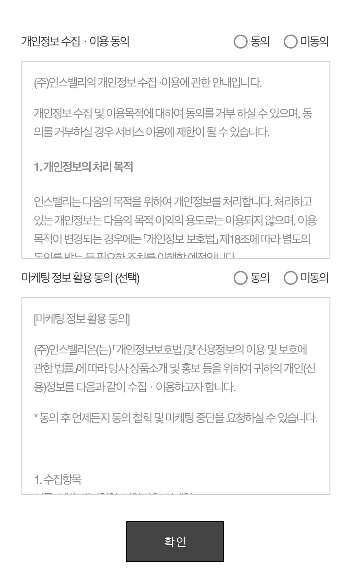 ▷ 개인정보이용동의 : 개인정보이용동의에 모두 동의 표시를 해 주어야 합니다.