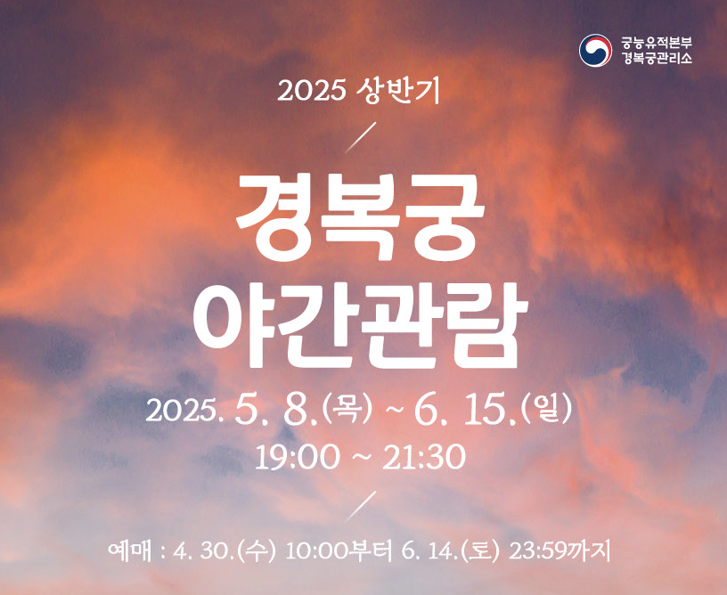 국가유산청 궁능유적본부에 따르면, 2025년 상반기 경복궁 야간개장 예매가 4월 30일 오전 10시부터 시작됐으며,